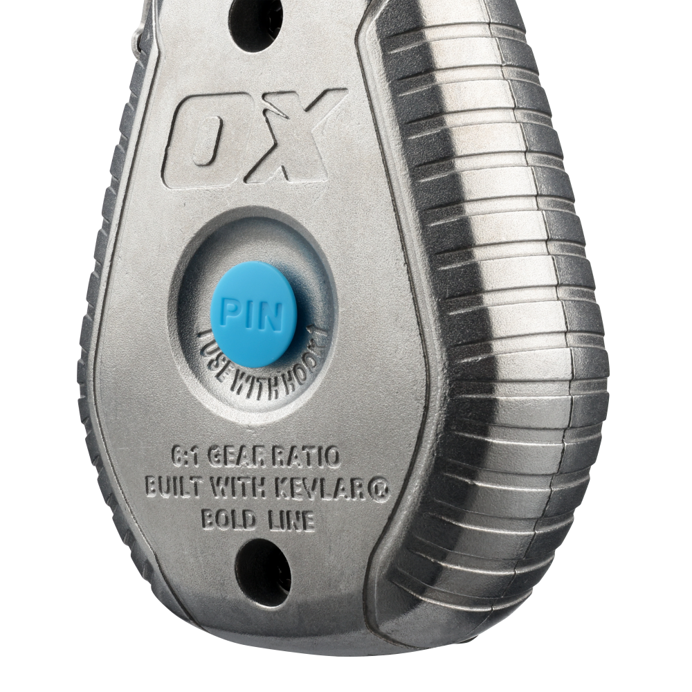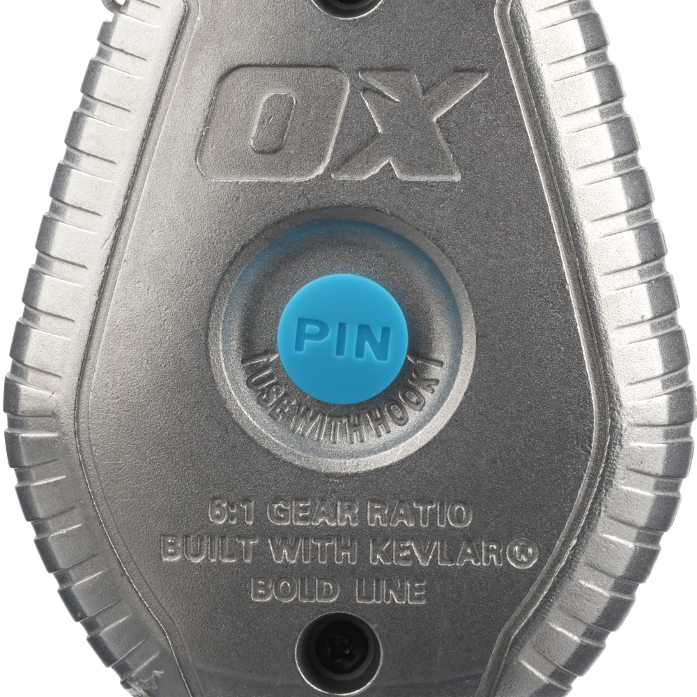 The OX Pro Series Aluminium Chalk Reel features a robust aluminium body for maximum durability. But what truly sets this chalk reel apart is its revolutionary 30m/100’ Kevlar® bold line—a game-changer in the world of chalk reels. Integrated hook storage and a pin & hook design allow for quick snaps, while the 6:1 planetary gears ensure rapid reeling.